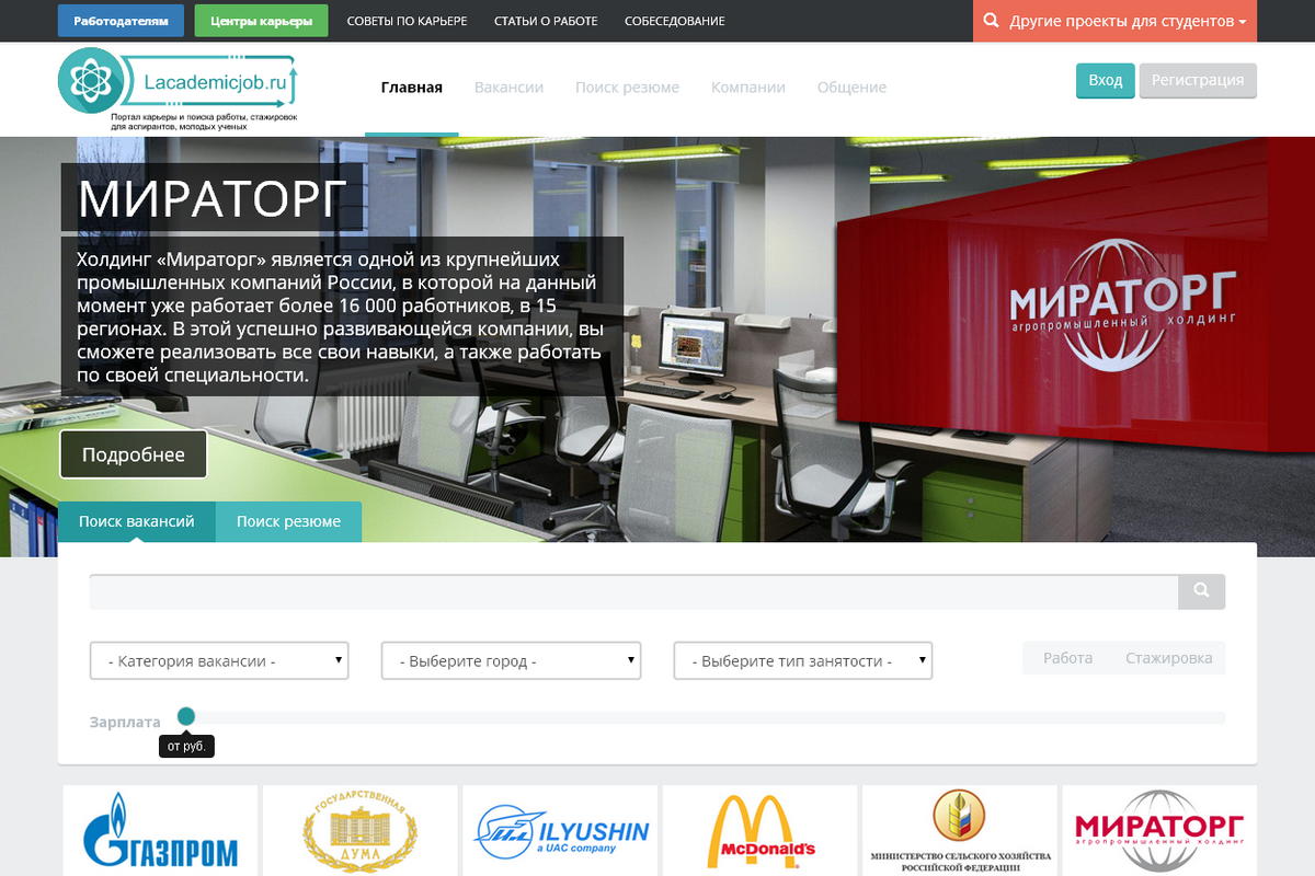 Каждый из 10 наших порталов работы специализируется на конкретной отрасли экономики, что обеспечивает максимально быстрый и продуктивный поиск.