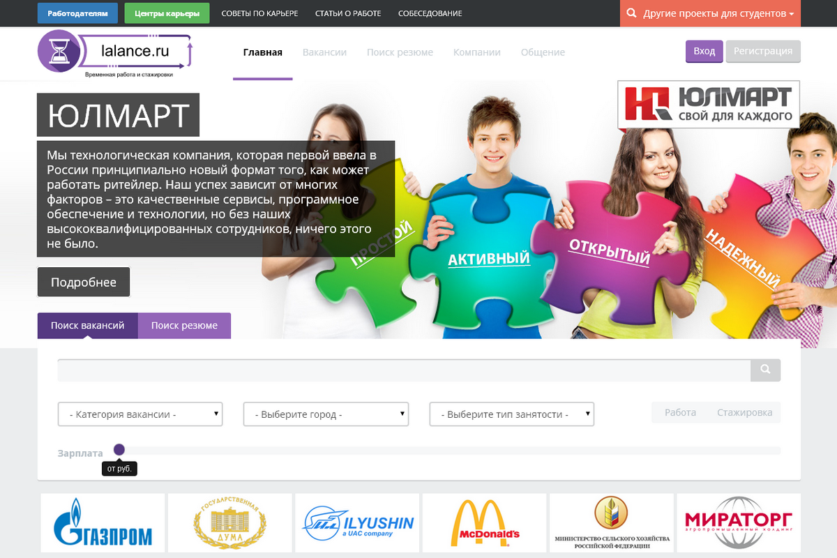 Каждый из 10 наших порталов работы специализируется на конкретной отрасли экономики, что обеспечивает максимально быстрый и продуктивный поиск.